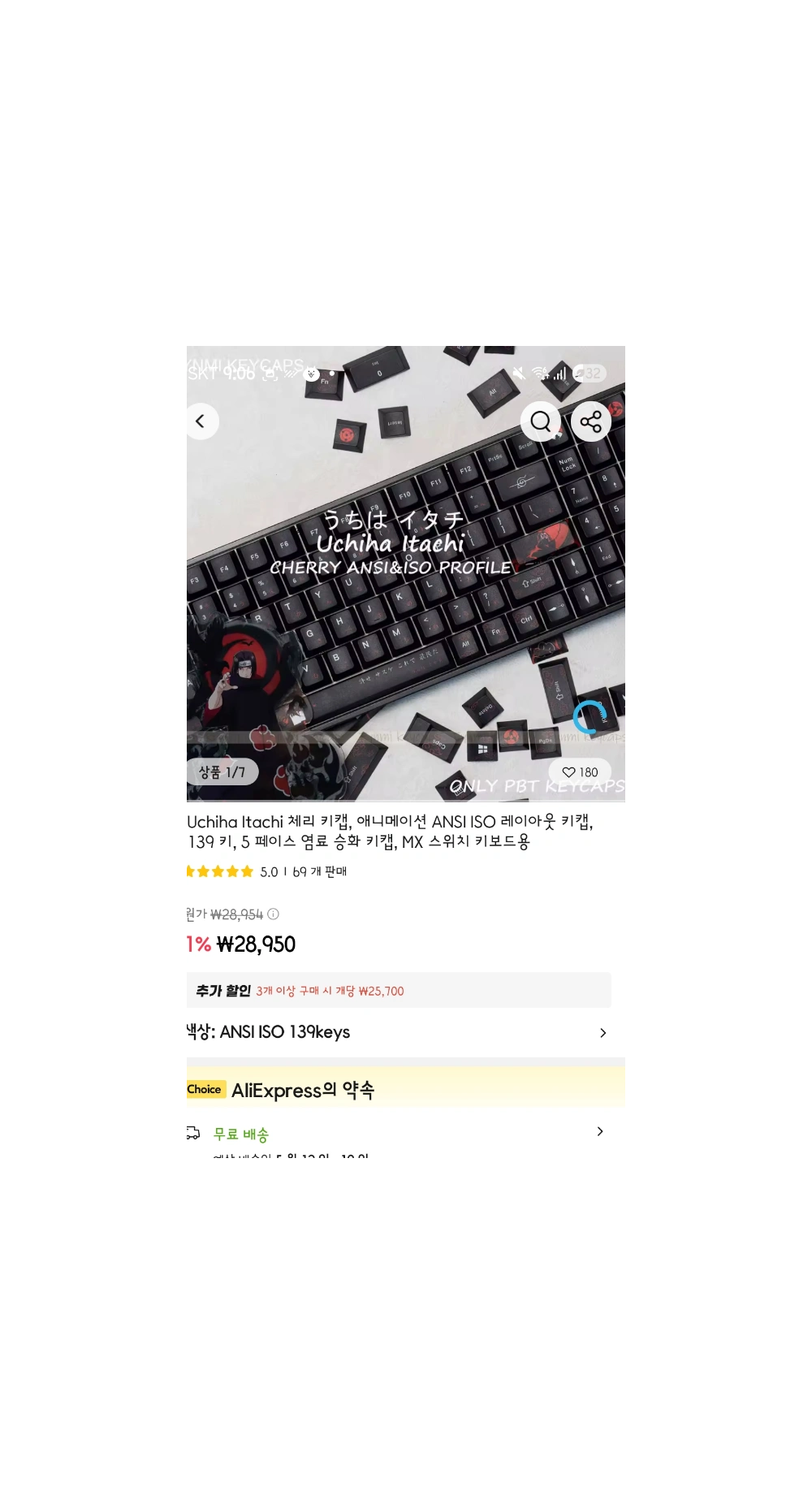 키캡 : 알리 싼마이 키캡 2개 믹스 (사진 참고해주세요!)