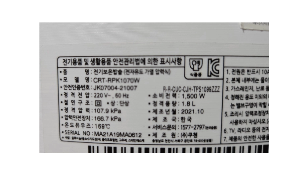 쿠첸 10인용 압력