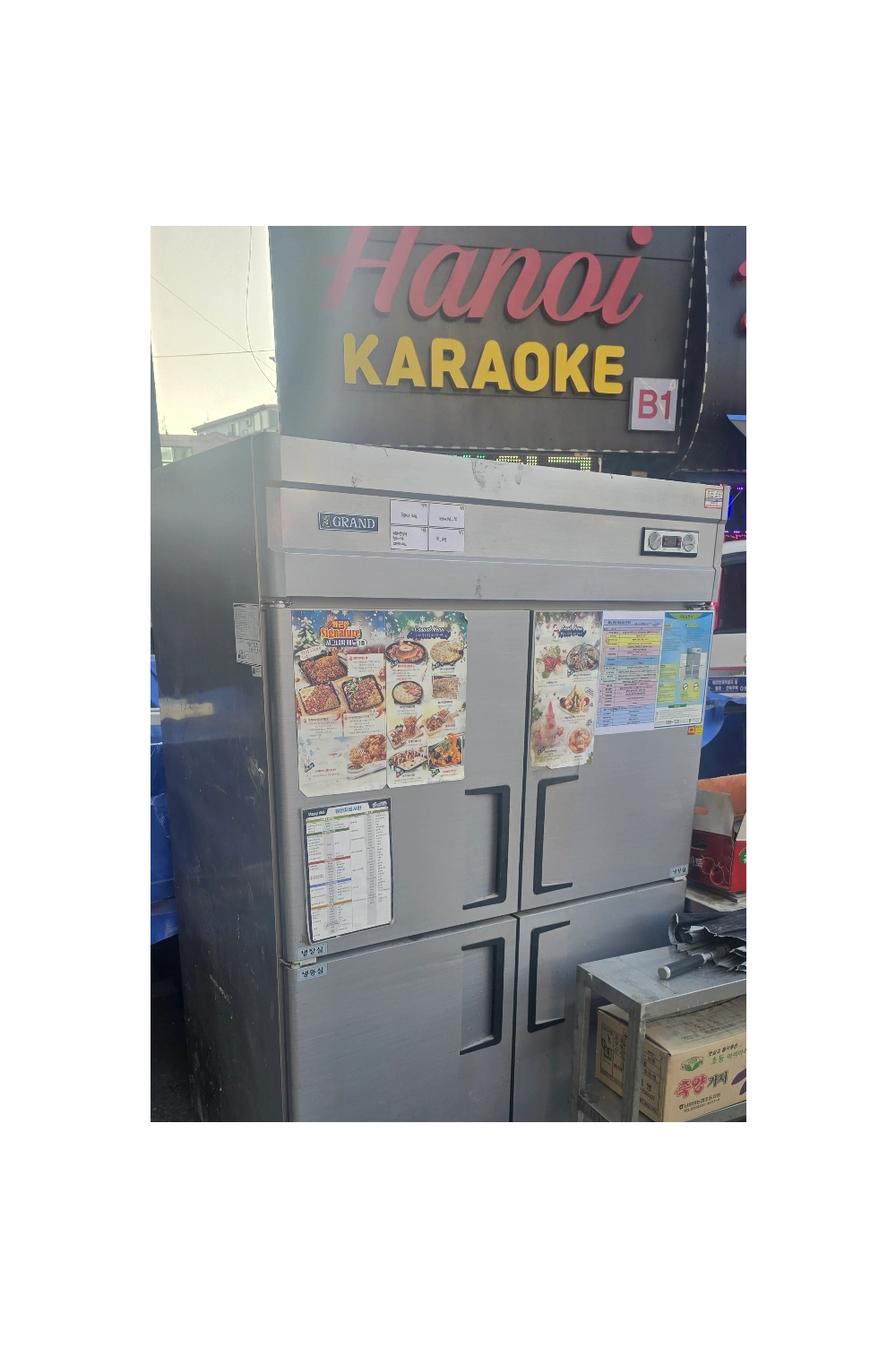 식당에서 사용되었어요 식당을 공사중이어서 사용하지 않았어요 문제는 없습니다 1칸은 냉동실이고,3칸은 냉장실 이에요
