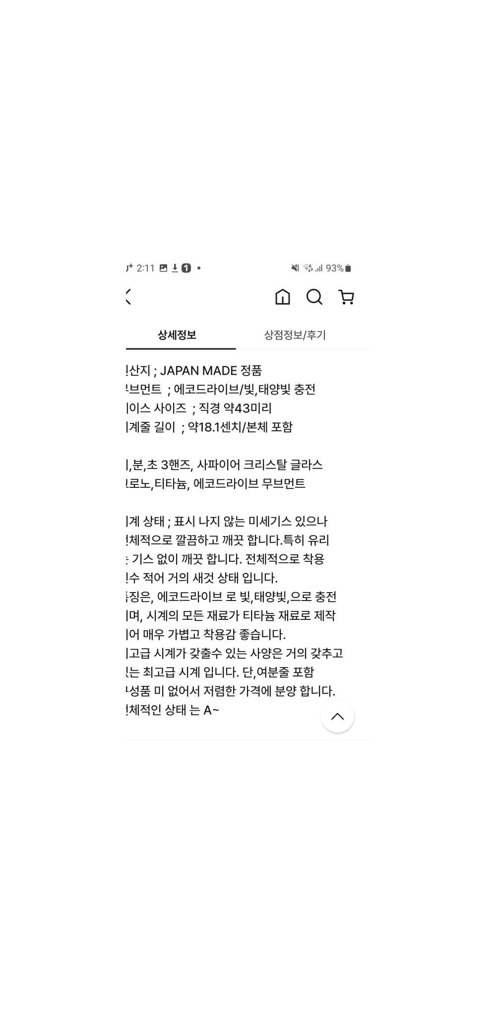 올 티타늄 이고 에코드라이브 적용으로 태양, 형광등으로 충전되어 건전지 자주 교체 필요 없어요 구매시 사제 시계박스에 넣어 잘포장해 드립니다