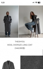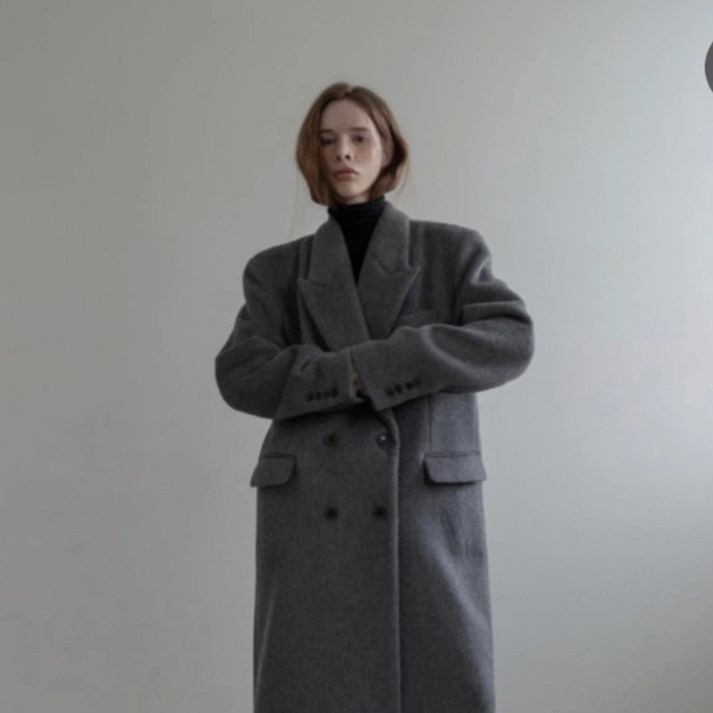 회색코트, 울 100%로 따뜻하고 한겨울에도 입기 좋음