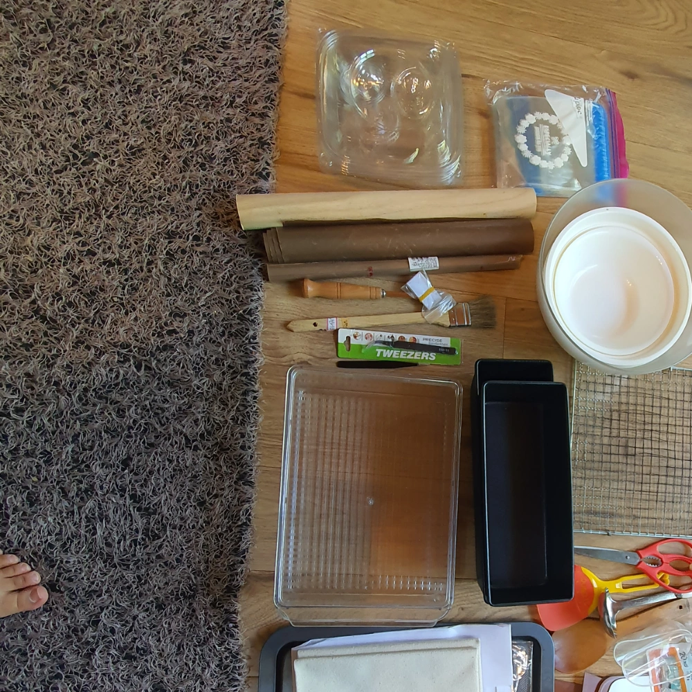 발효박스랑, 카스 디지털 온도계, 발효원통(×), 식빵틀 2개 , 쿠프 나이프 등등