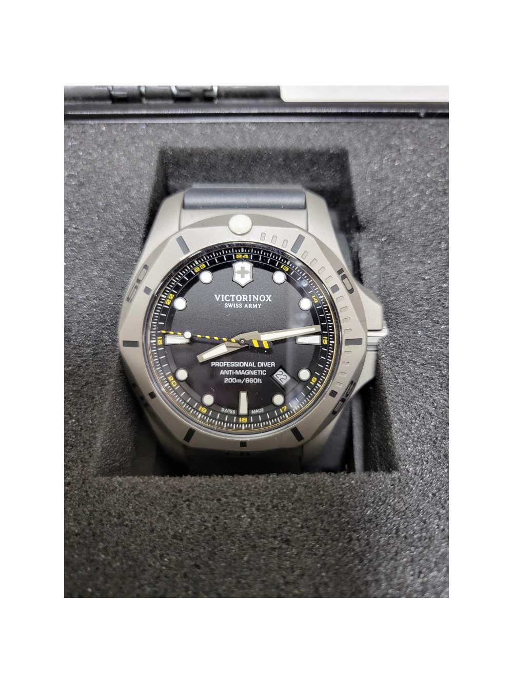 빅토리녹스 국 티타늄 200m 극강의 비주얼 사파이어 쿼츠 러버밴드, 코어 밴드 스트랩 여분 있습니다. 교판매처 5년 보증, 국제 3년 보증 21년 6월 25일 구입 사용 보관중입니다. 금 교환, 카드도 됩니다.