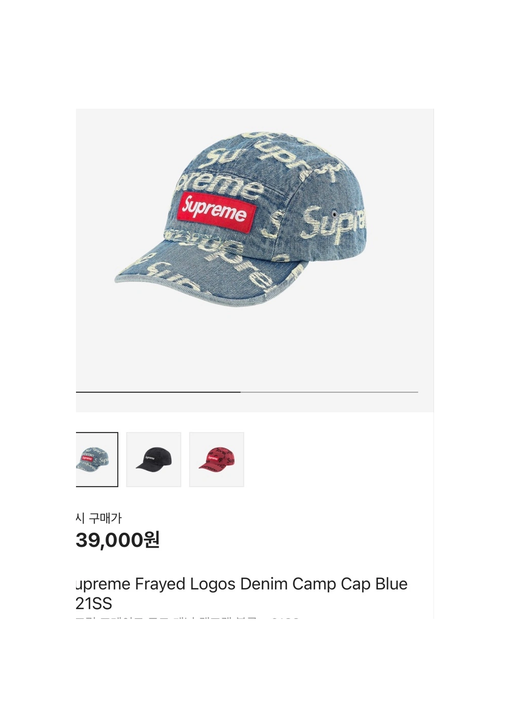 슈프림 k프레이드 로고 데님 캠프캡 블루 - 21SS > 뷰티/쥬얼리