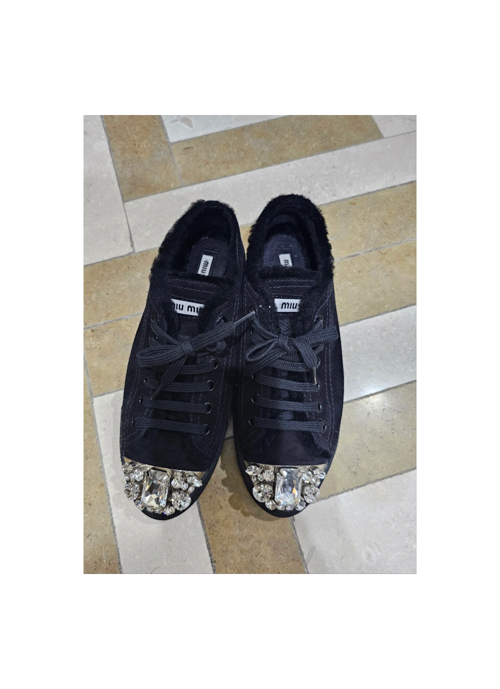 정품 미우미우 yy큐빅 털 스니커즈 235